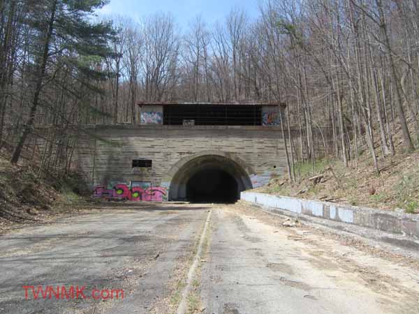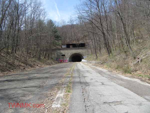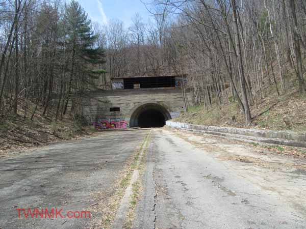 The western portion is just east of the Breezewood Interchange. In fact part of the Abandoned Turnpike is visible there as you exit but is still owned by the Turnpike Commission and used for storage. It is about a 2 mile hike uphill to get back to the Ray’s Hill Tunnel but it is well worth it.