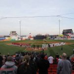 Game #6 Portland @ Reading. A sparse crowd on a cold night for this one. Not quite as cold as other nights but still cold. Ranger Suarez pitched for Reading and was better certainly than opening night but his line was better than his performance. James McAvoy for Portland was about the same. Portland jumped out to an early lead, McAvoy and the Sea Dogs’ bullpen couldn’t hold it in the 6th and the game wound up going 13 innings. I was long gone by then but Portland had a big 13th inning and won their first game of the year. If it was warmer out I would have stayed simply to see the new extra innings rules and in this case I don’t think it worked as intended. With a sparse crowd (they closed off the left field grandstand and the party deck) of about 500 people in the seats I got a foul ball and got my ugly mug on the jumbotron. I gave the ball to a kid.