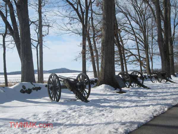 - Confederate artillery on Seminary Ridge